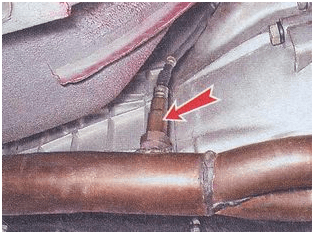 - Показатель насыщения смеси кислородом. Это устройство расположено на трубе выпуска отработанных газов, и занимается тем, что с помощью обратной связи контролирует количество поступающего топлива в смеси, так как топливо, сгорая, потребляет кислород. Показатели тех процессов полностью взаимосвязаны. На рисунке труба выпуска и датчик соединены сварным швом, то есть скорее всего, был произведен ремонт системы выпуска.