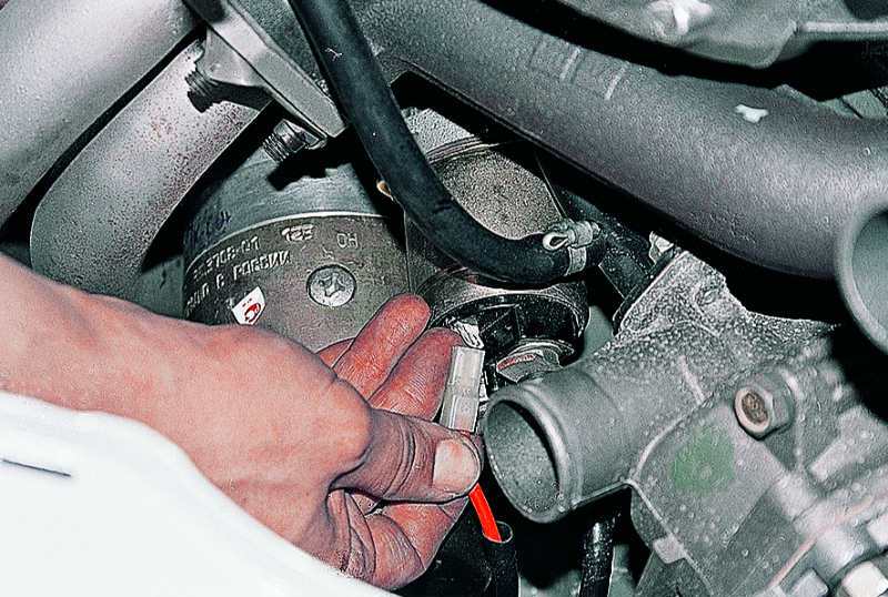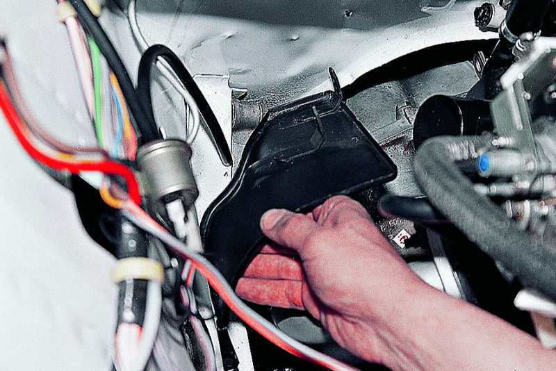 - Смещаем устройство вперед и разъединяем вывод реле с колодкой.