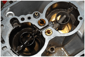 - Наружная мойка. Включает в себя очистку корпуса от масляных отложений, промываются каналы корпуса чистым ацетоном или бензином, продуваются из компрессора. Проводится чистка диффузоров и эмульсионных колодцев. Оцениваются все уплотнительные элементы, которые содержит карбюратор;
